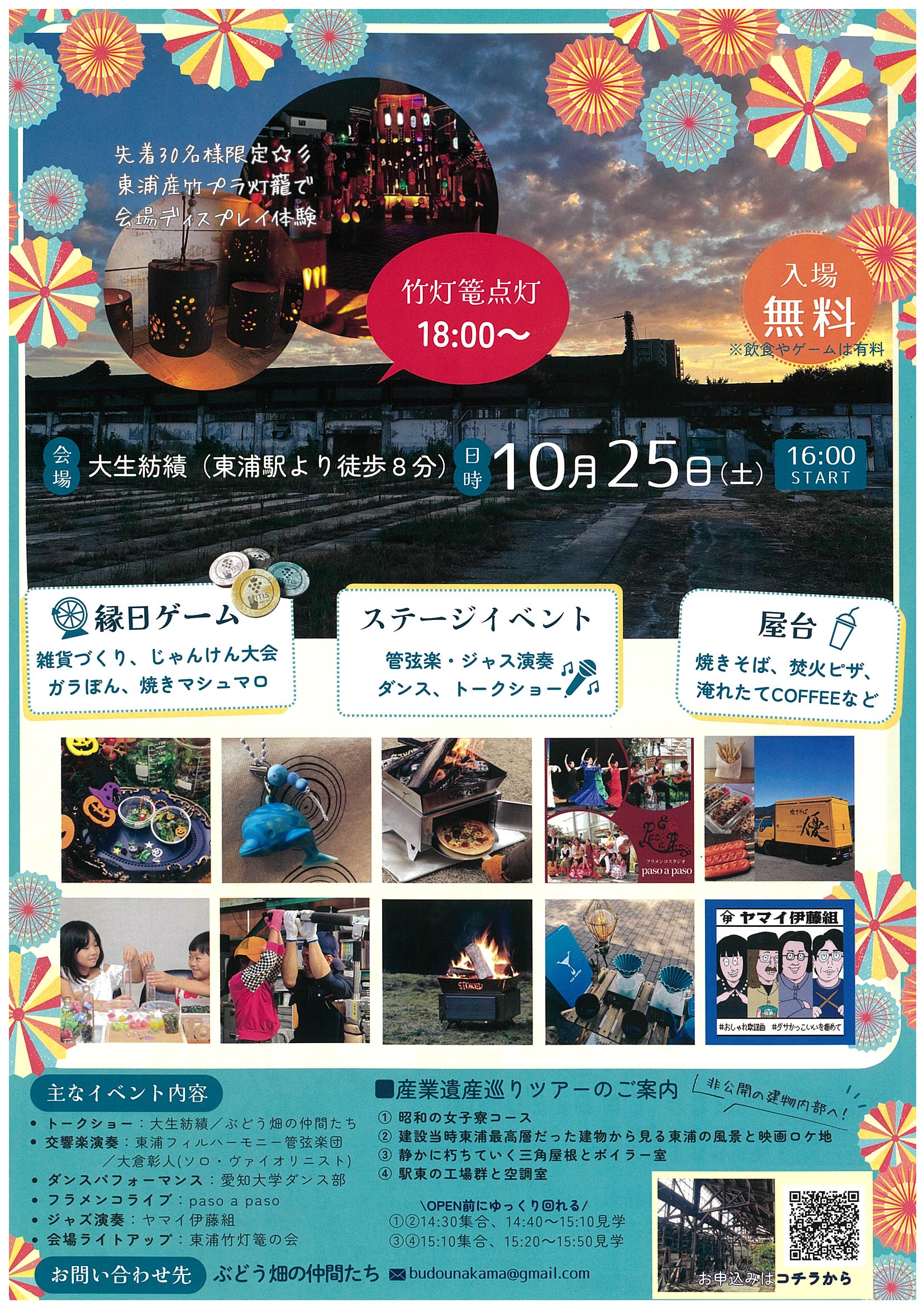 普段は入れない産業遺産の工場跡地「大生紡績工場跡地」を舞台に、音楽イベントやダンスパフォーマンス、屋台や縁日ゲームなど家族みんなで楽しめるイベントです。