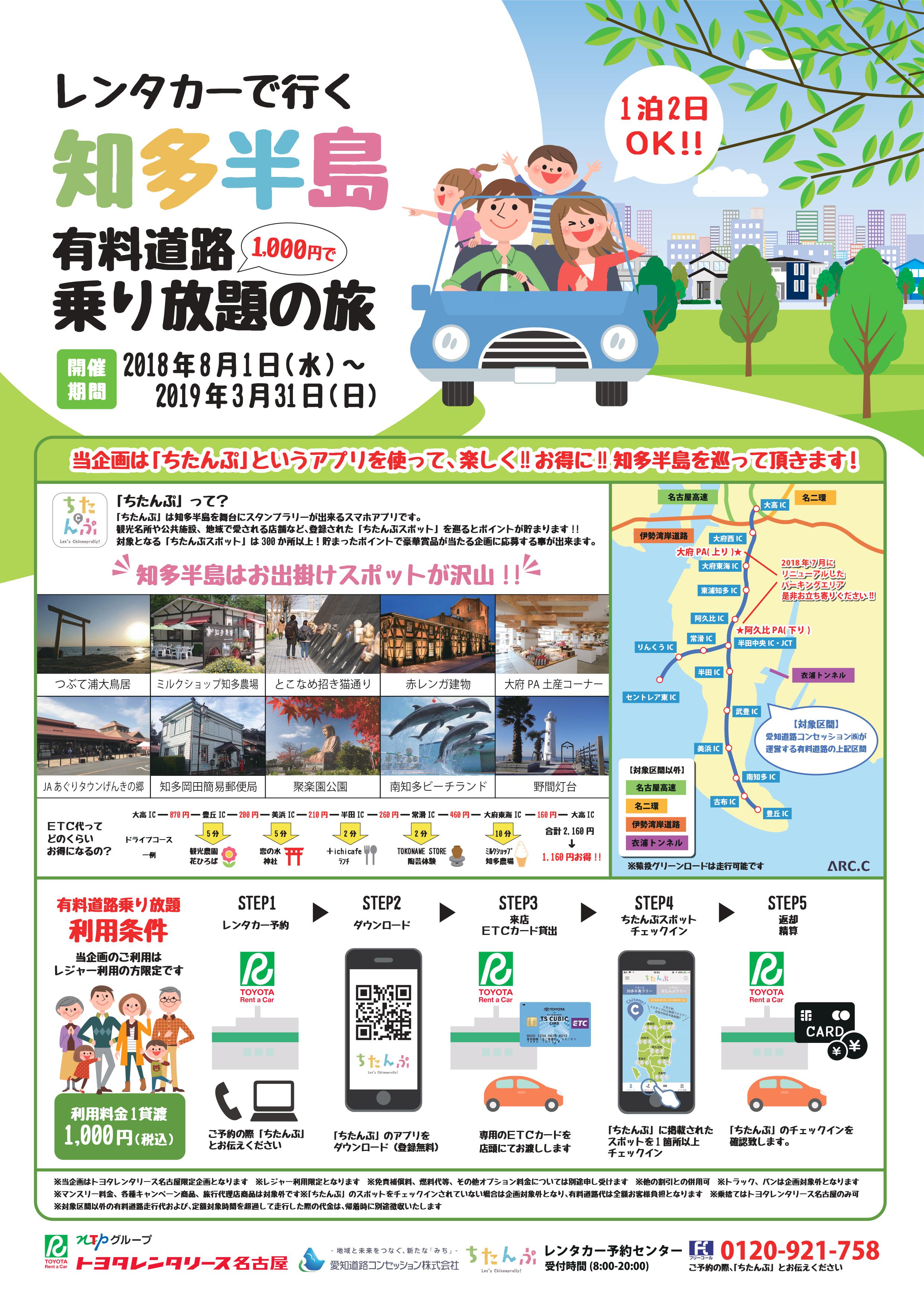 『ちたんぷ』とは・・・知多半島5市5町の観光施設や飲食店などを巡るスタンプラリーです。スマートフォンでアプリ「ちたんぷ」をダウンロード・登録(無料)し、参加・利用(無料)ができます。ちたんぷスポットではスタンプと、サービスクーポン(※一部の施設・店舗)を獲得し、さらにスタンプを集めて条件をクリアすると「ちたんぷギフト」が抽選で当たります!